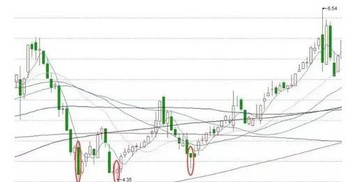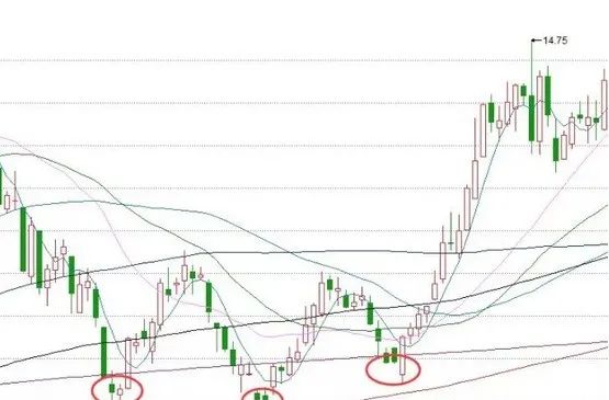 图2是创元科技的历史走势图,如图所示,该股在图中三个圆圈处形成三足鼎立的走势“三个底部的低点数值非常接近”,“最后一个底部的低点数值高于前两个低点”,“每两个低点之间的时间距离不超过1个月”,符合三足鼎立的条件。第二天走出缩量倒锤头走势。通常倒锤头是下跌的预兆,但要分在什么情况和位置。“定海神针加倒锤头”就是底部上涨的信号,投资者可积极入场,之后波段涨幅相当巨大!