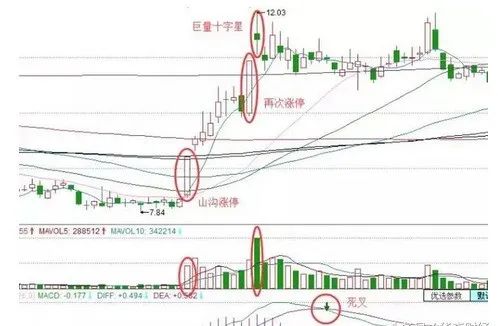 2)卖点。目标股连续上涨后出现标志性的见顶K线、KDJ死叉、MACD红柱缩短、MACD死叉等两个以上卖出信号共振时卖出。