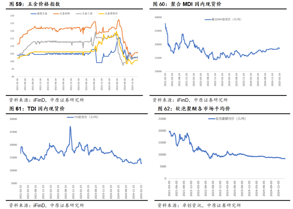 截至2025年2月28日,聚合MDI国内现货价为18500元/吨,较上月末+1.19%;TDI国内现货价为12600元/吨,较上月末-10%。