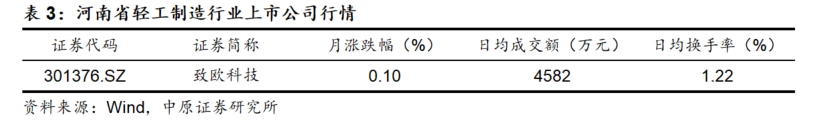 截至2025年2月末,轻工制造行业沪深两市在河南省有1家上市公司致欧科技(301376.SZ)。