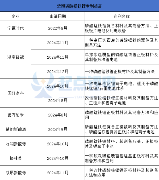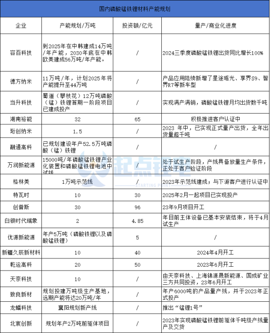 数十家磷酸锰铁锂企业布局进展