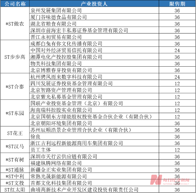 此外,产业投资人需要让ST花王在2025年的主营业务收入将达到4亿元以上,并在2025年1月31日前启动向花王股份注入国家鼓励的、监管认可的、具有较好行业前景的新质生产力方向相关资产的工作;在重整程序终结后第二个至第四个完整会计年度内(即2026年、2027年、2028年会计年度),上市公司的主营业务收入每年均达到5亿元以上,3个会计年度合计净利润不低于1.8亿元;如合计净利润未达到前述标准,则不足部分由产业投资人向花王股份以现金方式予以补足。