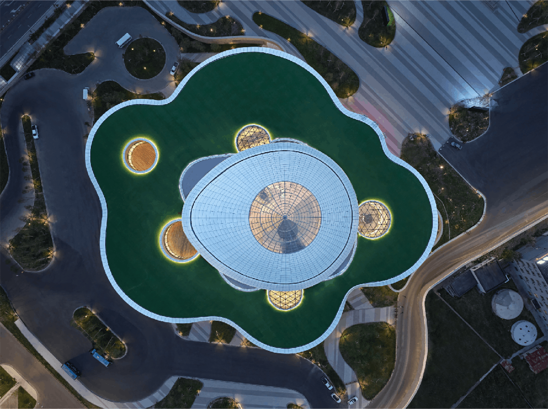 淡季时以草原及顶层效果展现当地特点,节省能源约40%。