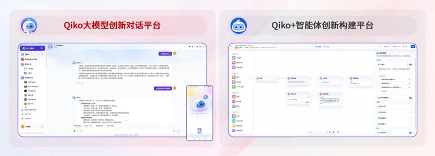 Qiko平台通过一站式服务,解决了行业AI应用落地难、业务融合难、安全保障难、投入成本高等问题,为行业用户提供了便捷、高效的AI应用解决方案。而Qiko+平台则通过智能体构建、可视化工作流编排、RAG知识库和团队AI资产管理等功能,助力行业用户快速构建具备私有知识和业务执行能力的AI应用。
