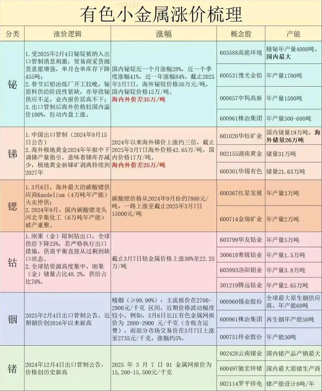 国内环保限产趋严及出口管制措施(如钨、锑等战略资源)加剧供应紧张,锑价突破12万元/吨,钨精矿价格创历史新高。