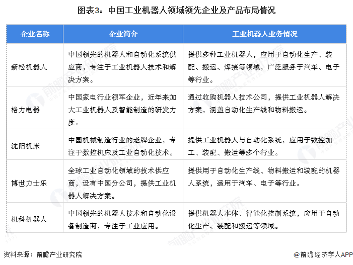 行业主要上市公司:埃夫特(688165)、拓斯达(300607)、新松机器人(300024)、埃斯顿自动化(002747)等;