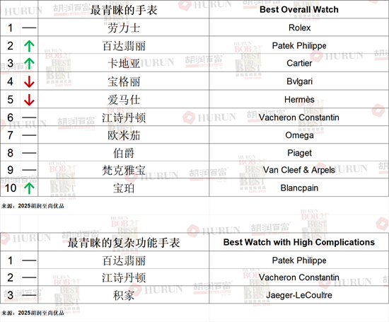 劳力士连续第四年稳居高净值人群最青睐的手表品牌,百达翡丽紧随其后排名第二,卡地亚和宝格丽分别排名第三和第四。百达翡丽则再次荣膺最受青睐的复杂功能手表品牌,江诗丹顿和积家分列第二和第三。