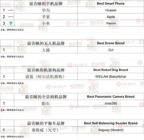在手机品牌中,华为领先苹果,连续两年为高净值人群最青睐的品牌,苹果排名第二,小米上升一位,位列第三。在其他消费电子领域,各品类最青睐品牌的榜首分别为:大疆(无人机)、蔚蓝阿尔法(机器狗)、影石Insta360(全景相机)、九号(平衡车)和小牛(两轮电动车)。