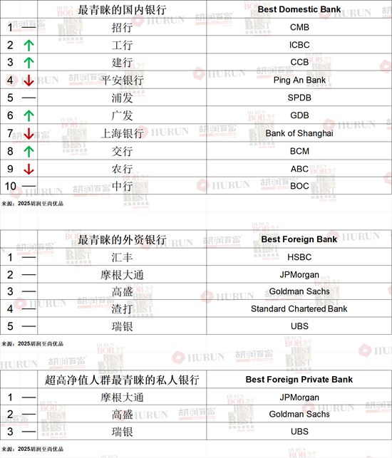 汇丰银行蝉联最受青睐的财富管理机构和外资银行榜首。招商银行则稳居最受青睐的国内银行第一名。在超高净值人群最青睐的私人银行中,摩根大通位居第一,高盛和瑞银紧随其后,分别排名第二和第三。