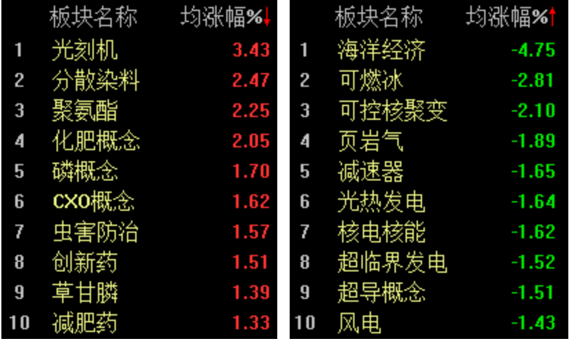 板块方面,光刻机概念一跃而起,芯碁微装触及20%涨停,飞凯材料涨超13%,江化微、广信材料、强力新材积极跟进。化工板块再掀涨停潮,恒光股份和华融化学20%涨停。