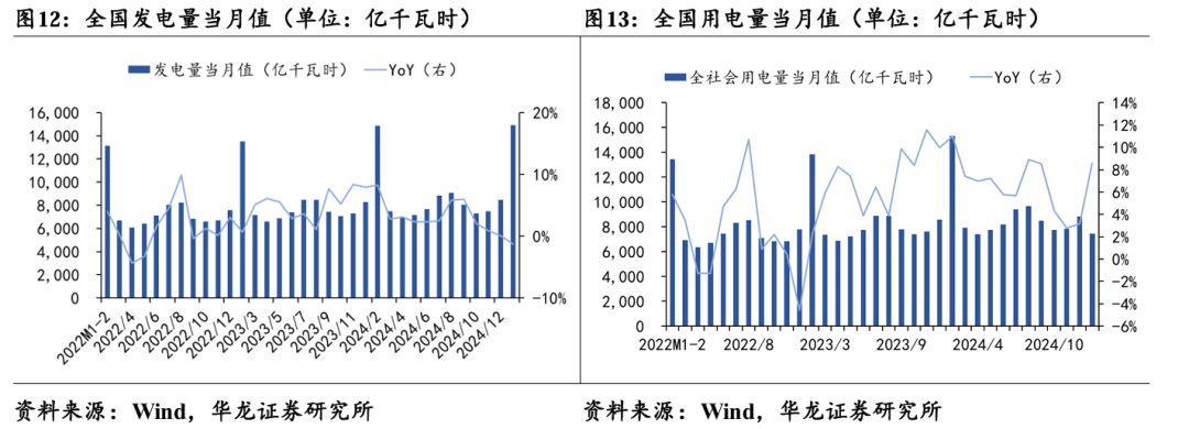 2025年1-2月,全国用电量当月值7434亿千瓦时,同比增长8.6%; 2025年1-2月,全社会发电量14921亿千瓦时,同比下降1.3%。