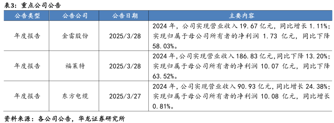 行业方面,2025.3.22-3.28(后文均简称本周)申万电新板块涨跌幅-1.70%,涨跌幅在31个行业中排名第17;申万公用板块涨跌幅-0.73%,涨跌幅在31个行业中排名第11。同期沪深300涨跌幅+0.01%,万得全A涨跌幅-1.29%。