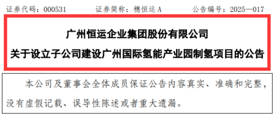4月9日,恒运集团(证券简称:穗恒运 A,股票代码:000531)发布公告称,将投资不超过3.53亿元设立全资子公司“广州恒运氢能科技有限公司”,负责建设广州国际氢能产业园制氢项目。此举标志着该公司在氢能产业链的布局进一步深化,为绿色转型注入新动能。