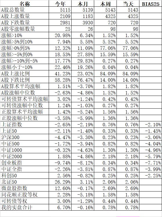 主流宽基指数中涨幅居前的微盘股指数上涨2.69%、中证2000上涨2.18%;涨幅居后的沪深300涨0.23%、科创50涨0.25%。今天一涨,中证2000今年再次浮出水面。