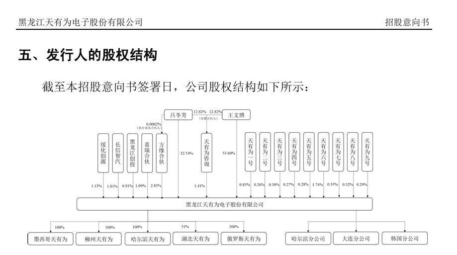 2、吕冬芳女士,1973 年 11 月出生,中国国籍,无境外永久居留权,本科学历。吕冬芳女士自2001年5月至2003年5月任哈尔滨天有为电子仪表制造有限公司董事兼常务副总;2003 年 5 月至 2022 年 2 月任天有为有限监事;2022年3月至今任天有为董事、总经理。吕冬芳女士系第十四届全国人大代表。