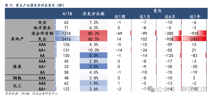 产业债利差相对平稳,民企地产债利差回升