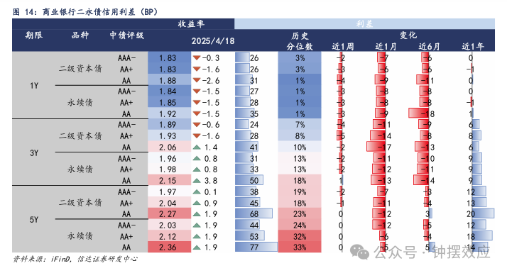二永债收益率曲线略微趋陡,3Y中高等级二级债利差显著压缩