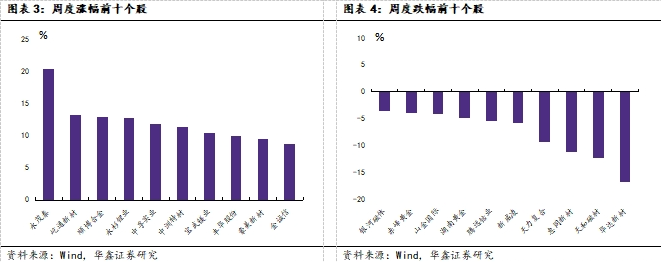 周度跌幅前十个股分别是银河磁体(-3.58%)、赤峰黄金(-3.83%)、山金国际(-4.19%)、湖南黄金(-4.77%)、腾远钴业(-5.43%)、新威凌(-5.73%)、天力复合(-9.38%)、惠同新材(-11.25%)、天和磁材(-12.37%)、华达新材(-16.72%)。
