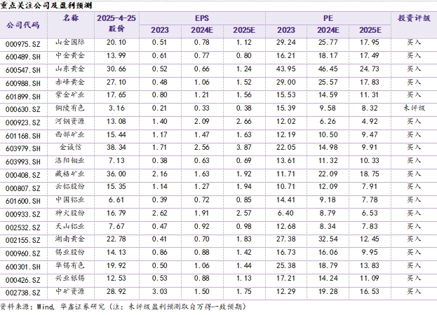 黄金行业推荐中金黄金,山东黄金,赤峰黄金,山金国际。铜行业推荐紫金矿业,洛阳钼业,金诚信,西部矿业,河钢资源,藏格矿业。铝行业推荐神火股份,云铝股份,天山铝业。锑行业推荐湖南黄金,华锡有色。锡行业推荐锡业股份,华锡有色,兴业银锡。