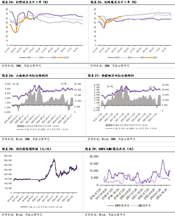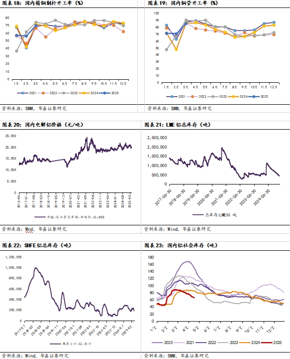 下游方面,国内本周铝型材龙头企业开工率为59.5%,环比+1pct;国内本周铝线缆龙头企业开工率为63.6%,环比持平。