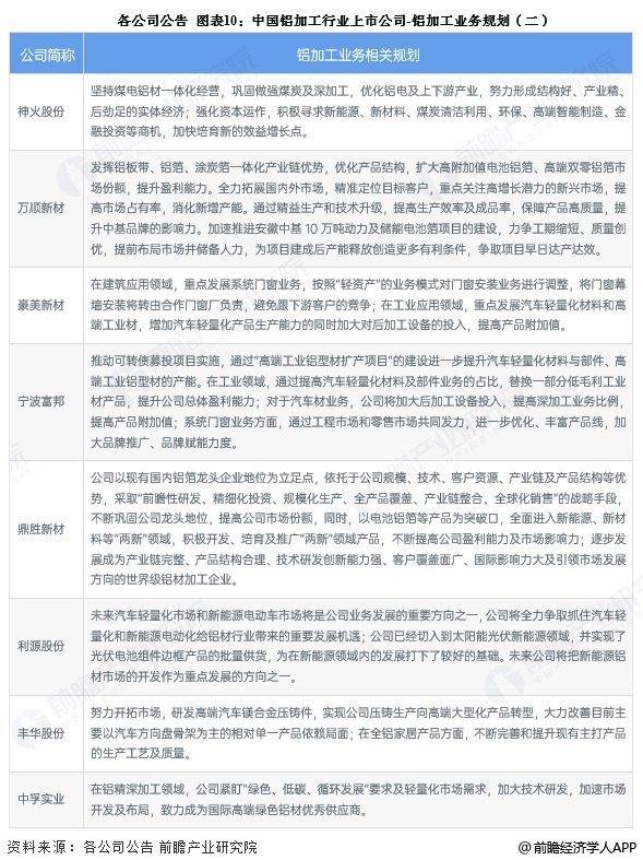 以下为我国铝加工上市企业铝加工业务相关规划总结: