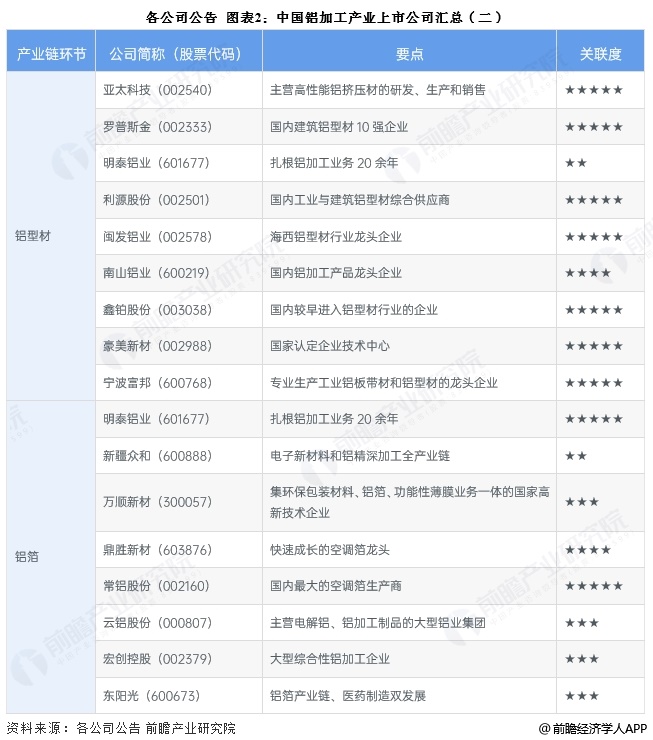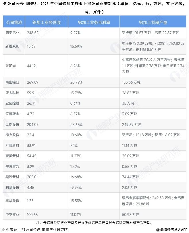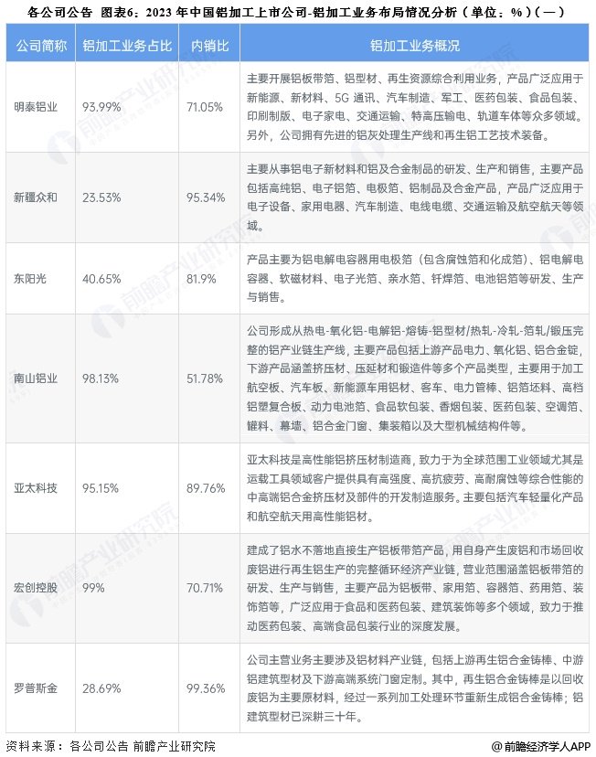 本文核心数据:铝加工行业上市公司营业收入、铝加工行业上市公司铝加工业务占比等