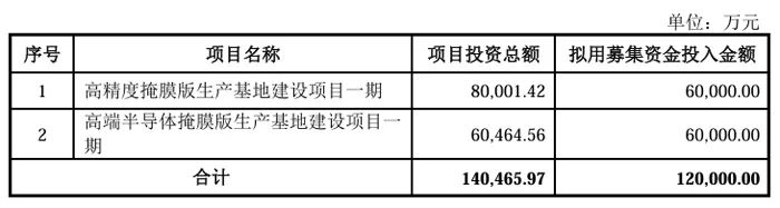 募集说明书(注册稿)显示,清溢光电本次拟向特定对象发行A股股票总金额不超过12亿元(含本数),扣除相关发行费用后的募集资金净额拟用于两个项目:一是高精度掩膜版生产基地建设项目一期,二是高端半导体掩膜版生产基地建设项目一期。