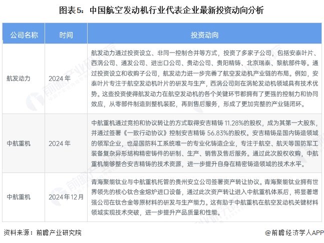 中国航空发动机行业的投资动向主要集中在产业链的完善和技术能力的提升上。航发动力通过投资设立和收购多家子公司,进一步完善了航空发动机产业链的布局。中航重机则通过股权收购和资产转让,增强了在精密铸造和钛合金材料研发生产领域的技术实力。这些举措不仅有助于企业自身的技术升级和市场竞争力提升,也为整个行业的发展提供了有力支撑,推动中国航空发动机行业向高端化、自主化方向迈进。航空发动机行业代表性企业最新投资动向如下: