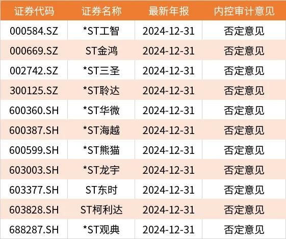 此外,最近连续两个会计年度内控被出具无法表示意见或否定意见的11家企业。