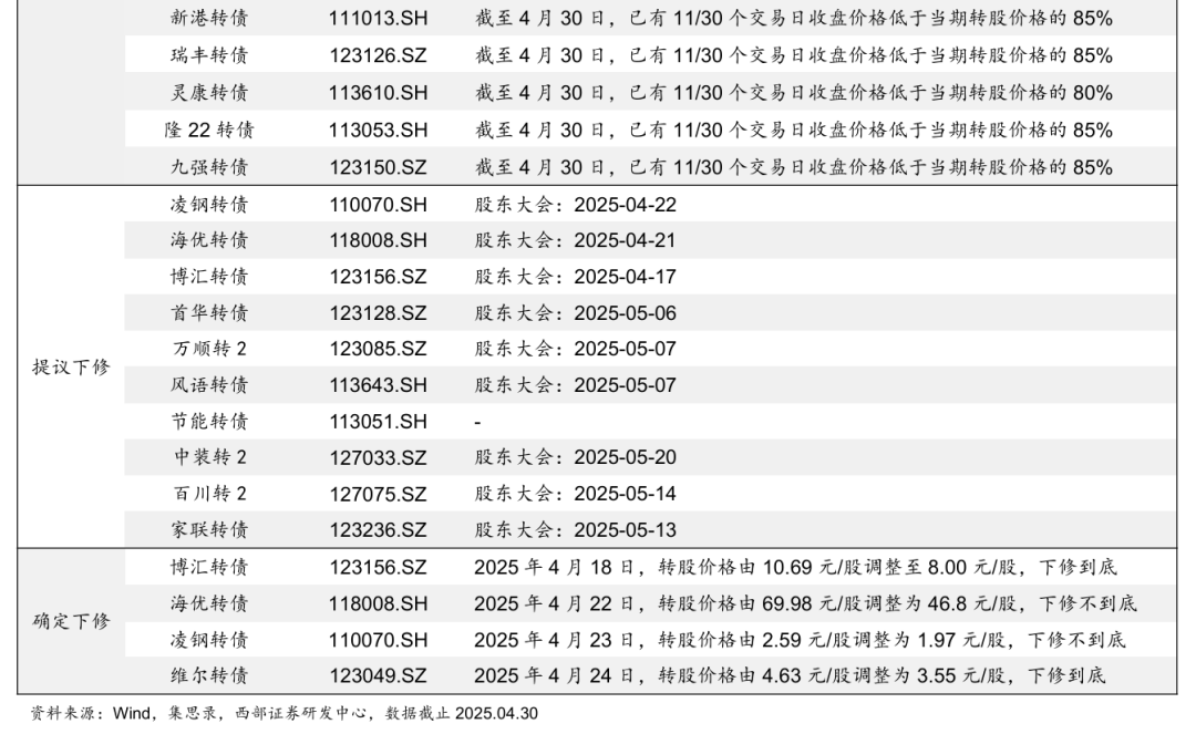 具体分析详见西部证券研究发展中心2025年5月7日对外发布的证券研究报告《科技方向二次启动?——5月转债月报》