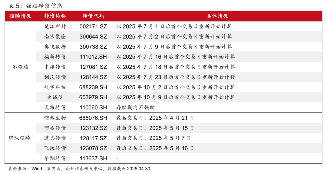 5.1 赎回:暂无可能强赎,5只确认强赎,9只不强赎