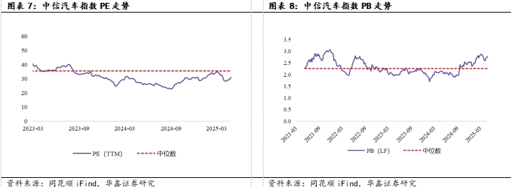 截至2025年5月9日,汽车行业PE(TTM)为31.0,位于近4年以来29.5%分位;汽车行业PB为2.8,位于近4年以来88.1%分位。