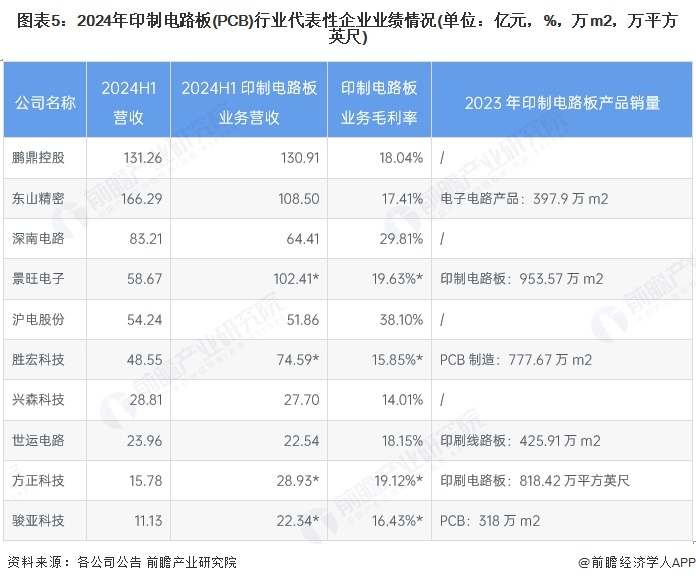 注:景旺电子、胜宏科技、方正科技、骏亚科技PCB业务营收和毛利率数据为2023年,其余上市企业为2024年H1