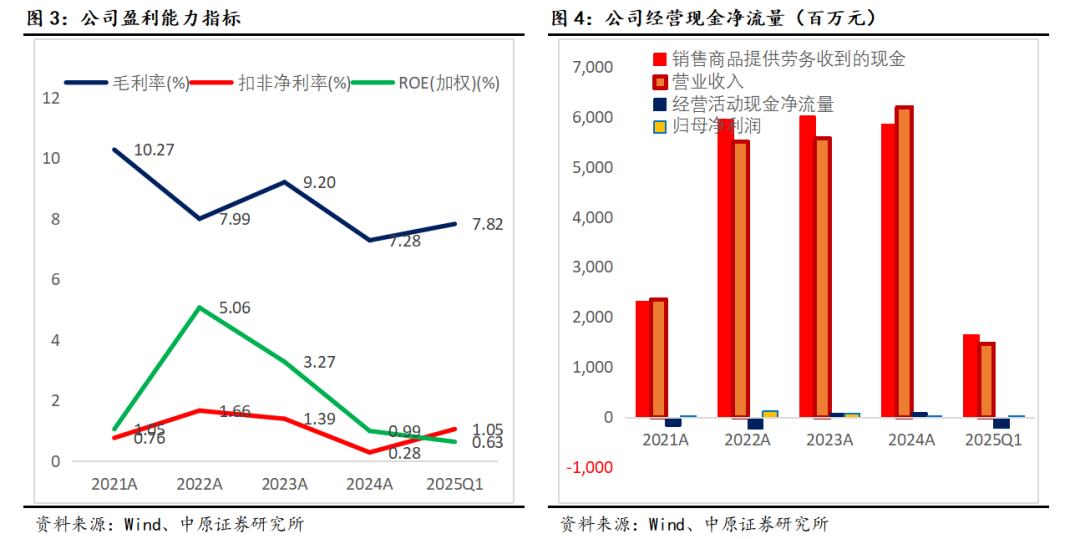 2025Q1公司毛利率7.82%,对比2024年报提升0.54个百分点,净利率1.25%,对比2024年报提升了0.7个百分点。