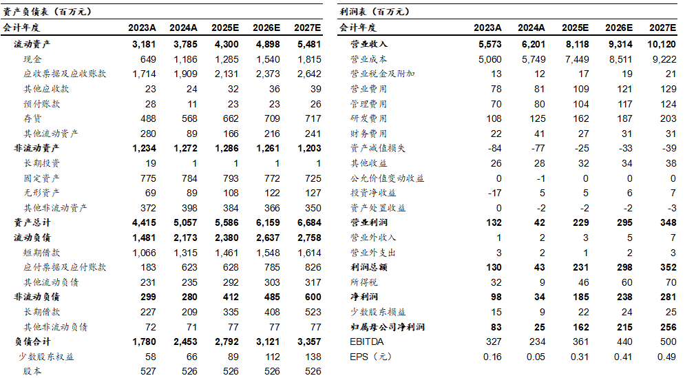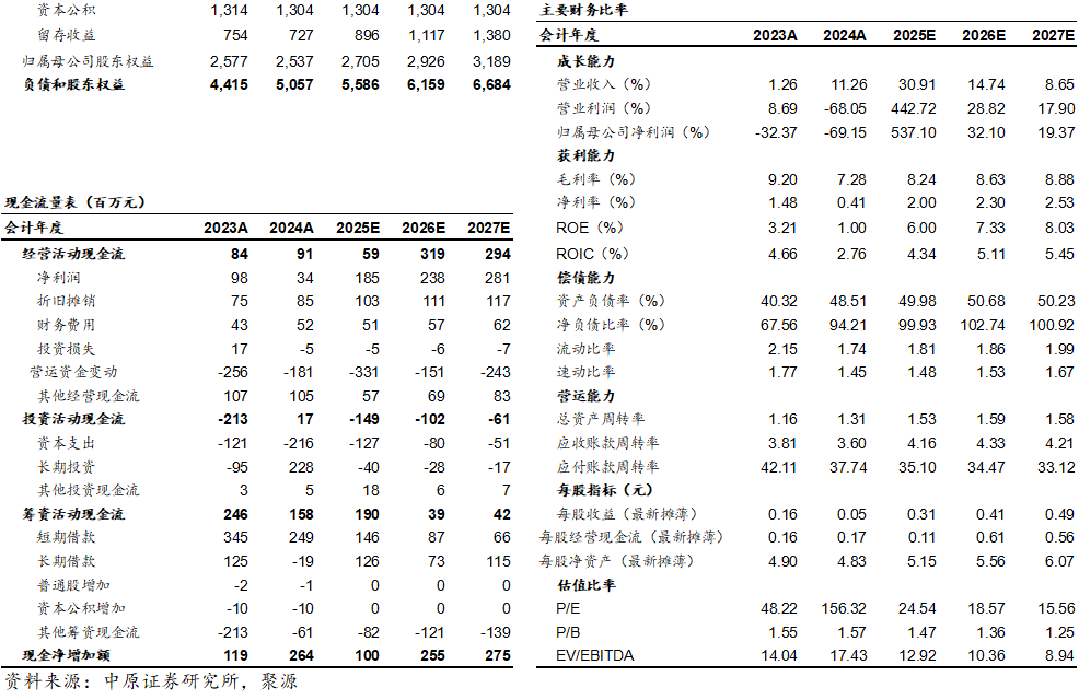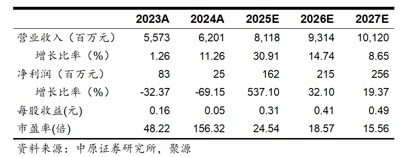 我们预测公司2025年-2027年营业收入分别为81.18亿、93.15亿、101.2亿,归母净利润分别为1.62亿、2.15亿、2.56亿,对应的PE分别为24.54X、18.57X、15.56X。继续维持公司“买入”评级。