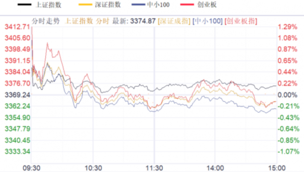 今日上证综指涨跌幅为0.17%,收盘价为3374.87点,成交额为5066.09亿元。深证成指涨跌幅为-0.13%,收盘价为10288.08点,成交额为7849.41亿元。两市成交额为12915.50亿元,较上个交易日变动幅度为-1.29%。沪深300涨跌幅为0.15%,创业板指涨跌幅为-0.12%,中证1000涨跌幅为-0.27%。
