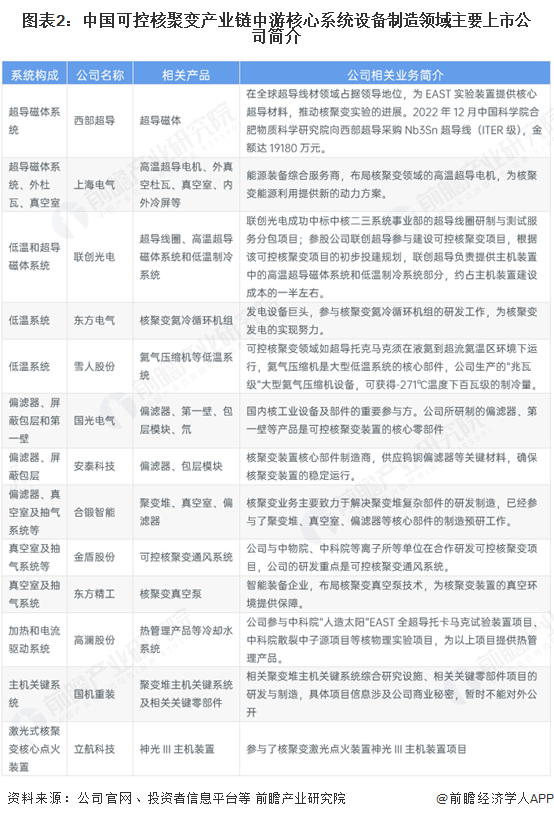 1、可控核聚变行业上市公司汇总及基本信息