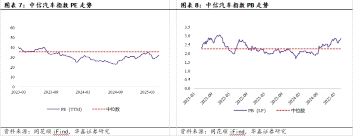 截至2025年5月16日,汽车行业PE(TTM)为32.0,位于近4年以来33.0%分位;汽车行业PB为2.9,位于近4年以来92.1%分位。