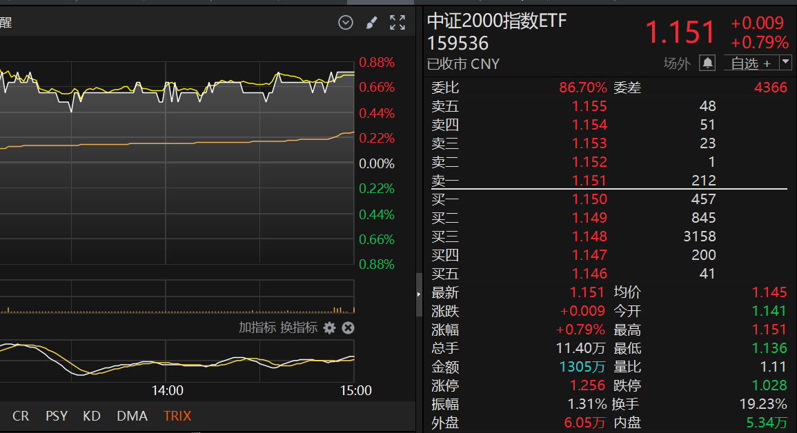 与微盘股挂钩的多只中证2000指数ETF也走势不凡,如中证2000指数ETF(159536)本月以来涨幅达到6%。