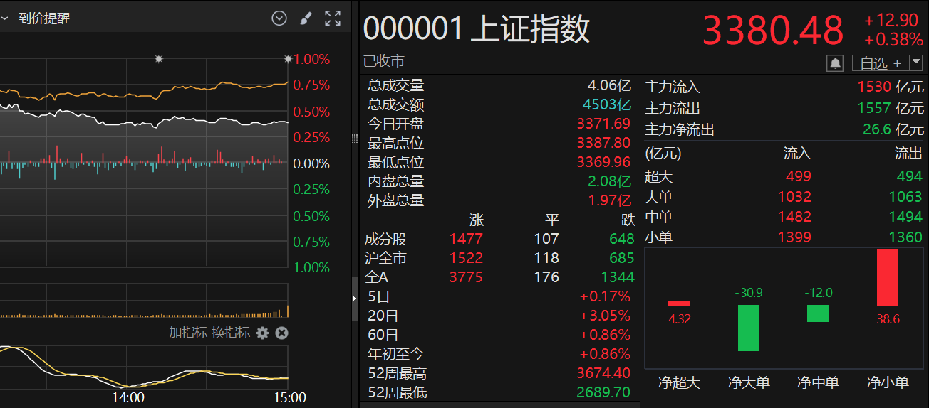 沪深京三市成交额超1.2万亿元,较昨日放量近千亿元。