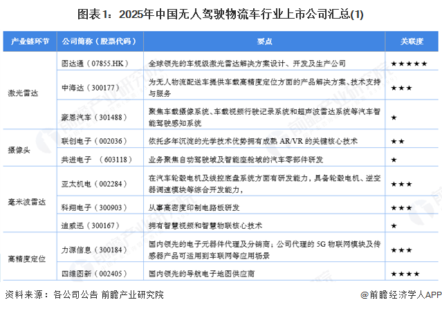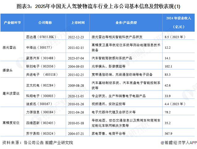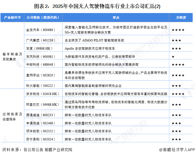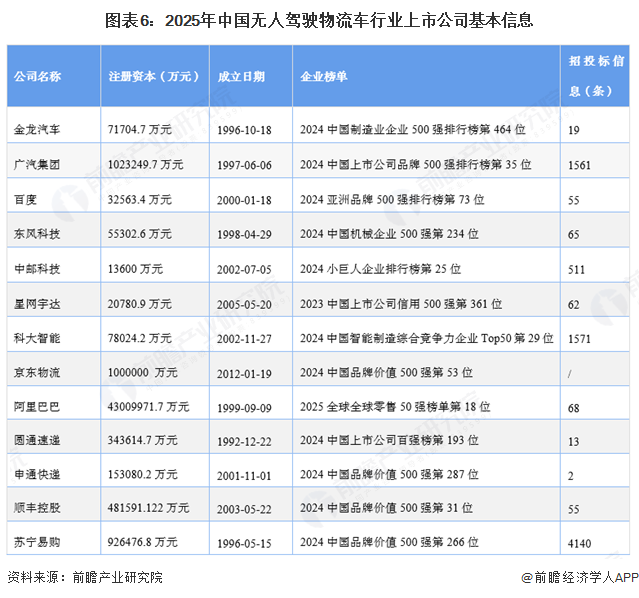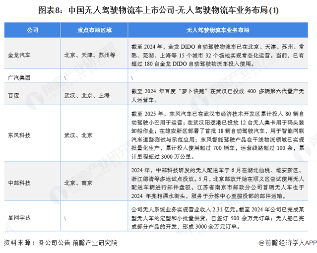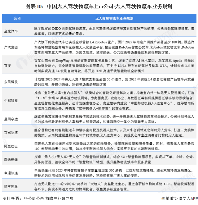 4、无人驾驶物流车行业上市公司无人驾驶物流车业务规划对比