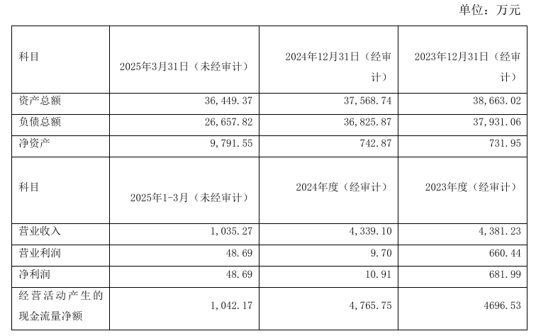 截至2025年3月31日(未经审计),敦化中能资产总额为3.64亿元,负债总额为2.67亿元,净资产为9791.55万元。