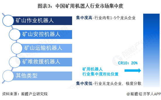 中国矿用机器人行业集中程度较低。大部分企业目前还是专注在矿下大型开采、掘进设备,对于智能化矿用机器人的布局相对较少。同时大型企业为了降本增效,通常会进行外采,目前行业整体集中度较低。初步测算CR10在20%左右。