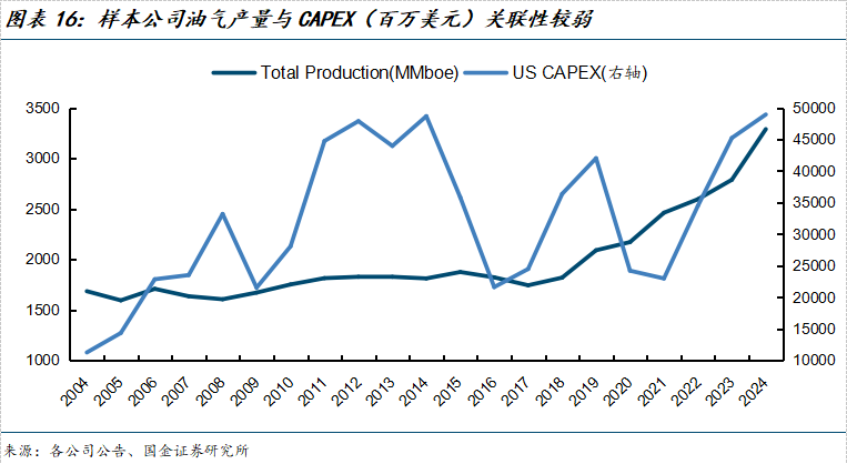 2.2 油气产量及增速受CAPEX支出影响较弱