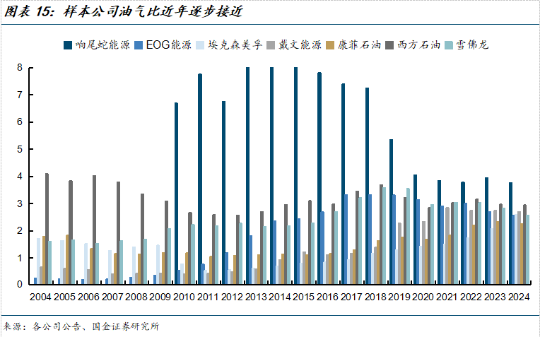 2.1 近年美国页岩油公司产量迅速增长,油气结构逐步接近