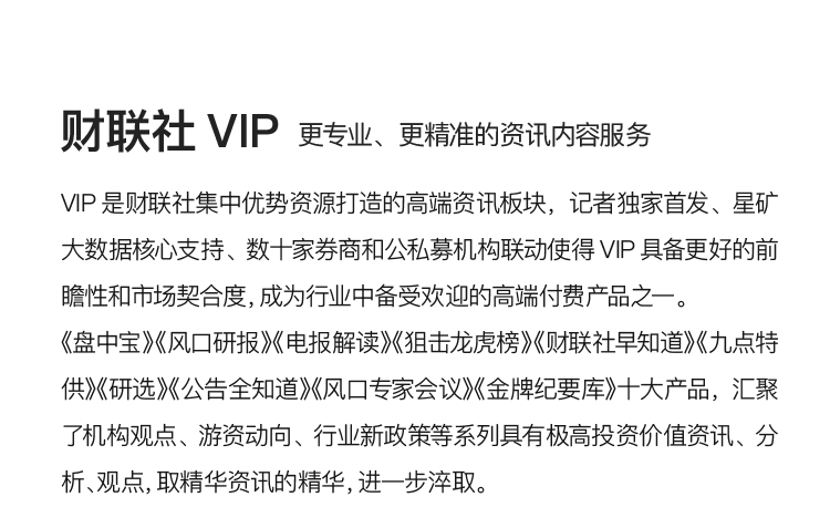 注:财联社VIP为内容资讯产品,并非投资建议。以下内容仅为资讯价值展示非对相关公司的推荐建议,非未来走势预测。投资有风险,入市需谨慎。