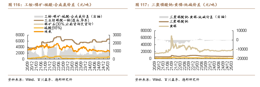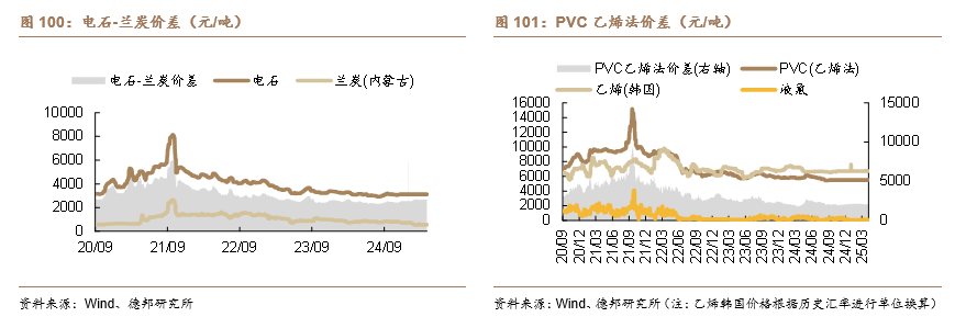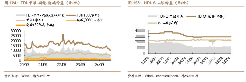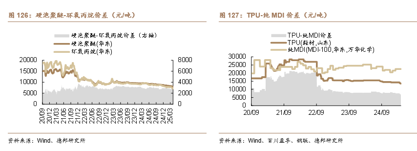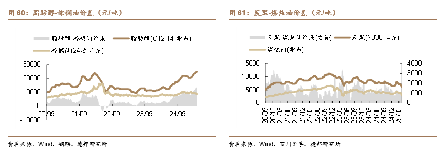 化工资本开支同比走弱,产能周期拐点再确认。此前在《2025年化工年度展望:起承转合》中我们指出,化工行业资本开支、在建工程、固定资产同比增速分别在2021、2022、2023年出现向下拐点,同时资本开支表现彼时已连续四个季度同比为负(2023Q4-2024Q3),化工企业扩产意愿走弱,行业产能扩张正逐步趋于理性。从最新数据来看,2024Q4和2025Q1化工行业资本开支同比分别为-19.6%和-10.6%,产能周期拐点再确认,供给端有望迎来边际改善。建议关注:万华化学、华鲁恒升、宝丰能源、卫星化学、龙佰集团、盐湖股份、恒力石化、荣盛石化、巨化股份、桐昆股份、新凤鸣。