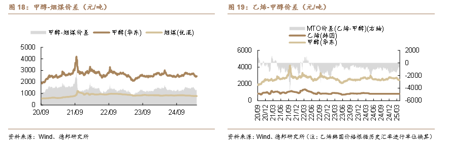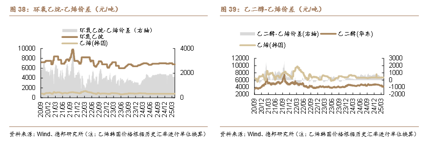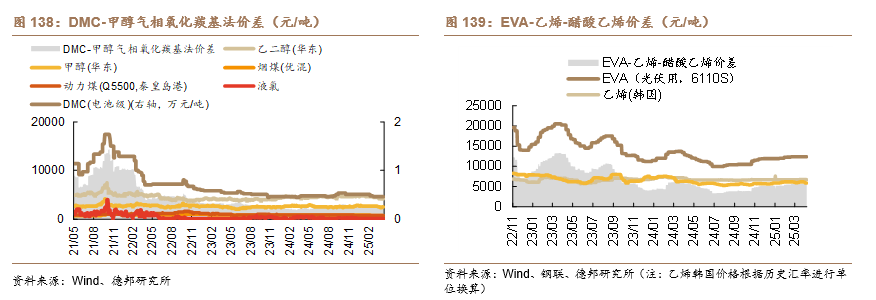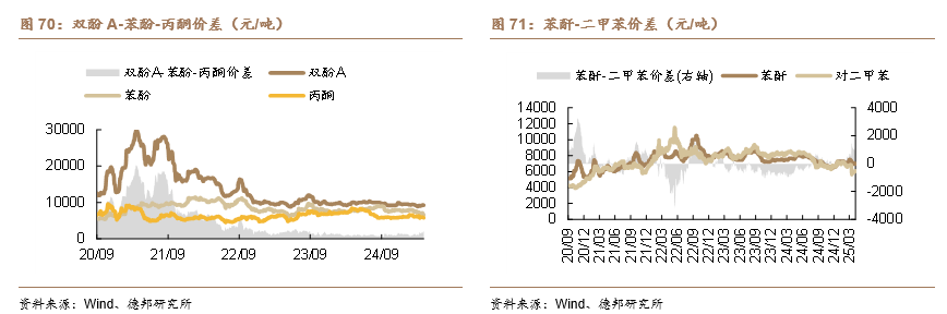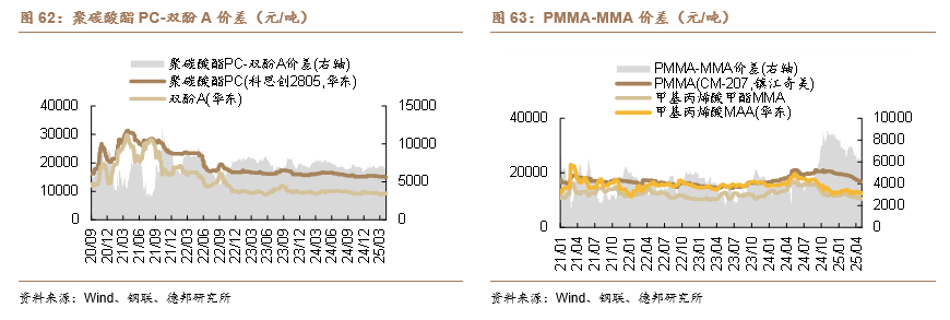 价格提升&成本改善,化工品基本面回暖。中美关税政策大幅缓和提振全球经济信心,带动化工品需求回暖,同时90天暂缓窗口期短期刺激抢出口需求,部分化工品价格快速回升。在我们监测的 386 种化工品价格中,本周有92 种化工品价格上涨,其中己二胺、丁二烯、纯苯、PX、对二甲苯、苯乙烯等产品涨幅居前,环比上涨幅度均在10%以上。成本端主要原材料原油和煤炭价格处于底部区间,截至5/16,布伦特油价65.41美元/桶,秦皇岛港动力煤价格670元/吨,分别位于2021年至今19%和33%分位,化工品成本端压力显著缓解。在我们监测的138种化工品价差中,本周63种化工品价差增长。向后展望,进入5月油价走势逐步企稳,在60-65美元/桶区间底部震荡,煤炭在供需宽松的格局下价格或仍承压,有望进一步推动化工品成本改善。