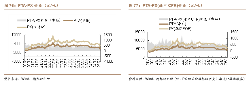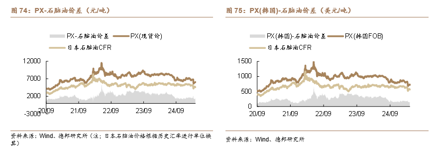 PX:本周PX(现货)价格7017元/吨,环比+12.0%。PX市场本周表现强势,供应意外缩量后,下游PTA询盘增加,现货浮动商谈逐渐提升至升水水平。同时下游PTA也处于上涨空间,聚酯支撑下PTA期现市场涨幅明显,对于PX市场也形成一定支撑。周前期供需利好加之宏观情绪升温,PX市场大幅上涨,但周后期由于原油市场回落以及产业涨幅向下传导不畅,PX涨幅有一定收缩。