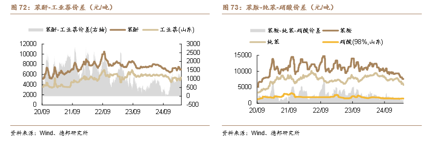 在我们监测的138种化工品中,本周有63种化工品价差上涨,11种化工品价差持平,64种化工品价差下跌。